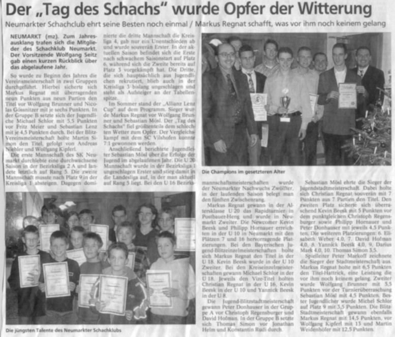 26.01.2004: Bericht vom RAPID-Turnier in der MZ.